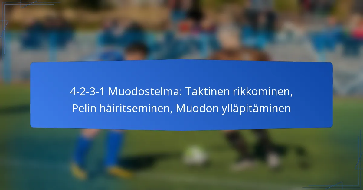 4-2-3-1-formaatio on taktinen asettelu, joka keskittyy rakenteellisiin rakentamisvaiheisiin, mikä mahdollistaa joukkueiden sujuvan siirtymisen puolustuksesta hyökkäykseen. Keskikenttäkontrollin korostaminen mahdollistaa tehokkaan pallonhallinnan ja pelin rytmin hallinnan, kun taas puolustuksen organisaatio varmistaa tiiviin rakenteen, joka tukee sekä puolustuksellista vakautta että nopeita vastahyökkäyksiä.