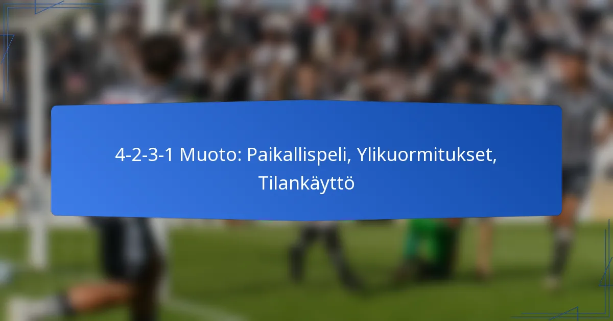 4-2-3-1 -muotoilu on monipuolinen taktinen järjestelmä jalkapallossa, joka tasapainottaa puolustuksen vahvuuden ja hyökkäyspotentiaalin. Hyödyntämällä strategisesti tilaa puolustusten takana hyvin ajoitetuilla hyökkäyksillä joukkueet voivat luoda maalintekopaikkoja ja parantaa hyökkäyspeliään. Puolustajien sijoittumisen dynamiikan ymmärtäminen on ratkaisevan tärkeää näiden liikkeiden tehokkuuden maksimoimiseksi.