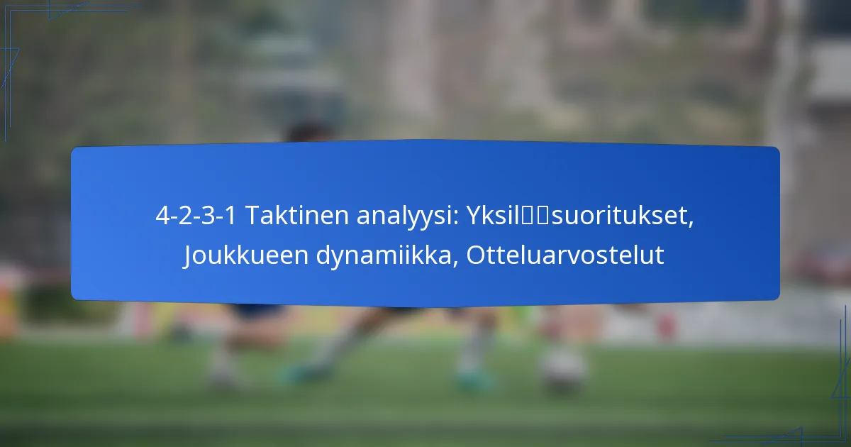 4-2-3-1 -muotoilu on laajasti käytetty taktinen järjestelmä jalkapallossa, joka yhdistää puolustuksen vankkuuden ja hyökkäyksen monipuolisuuden. Neljän puolustajan, kahden keskikenttäpelaajan, kolmen hyökkäävän keskikenttäpelaajan ja yhden hyökkääjän avulla joukkueet voivat tehokkaasti sopeutua erilaisiin vastustajiin samalla kun ne säilyttävät hallinnan keskikentällä. Tämä muotoilu ei ainoastaan paranna pallon hallintaa, vaan mahdollistaa myös dynaamisen hyökkäyspelin, mikä tekee siitä suositun valinnan nykyaikaisessa jalkapallossa.